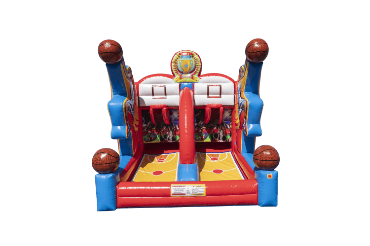 This fast-paced competitive Shooting Stars inflatable game will have participants offering up their best shots, in this dueling basketball game unlike any other. Each player can engage in a crossover shooting action as they try to make baskets, and as the ball return from each shot makes it to the opponent's lane, the first player to get rid of all their basketballs rules this inflatable court.
